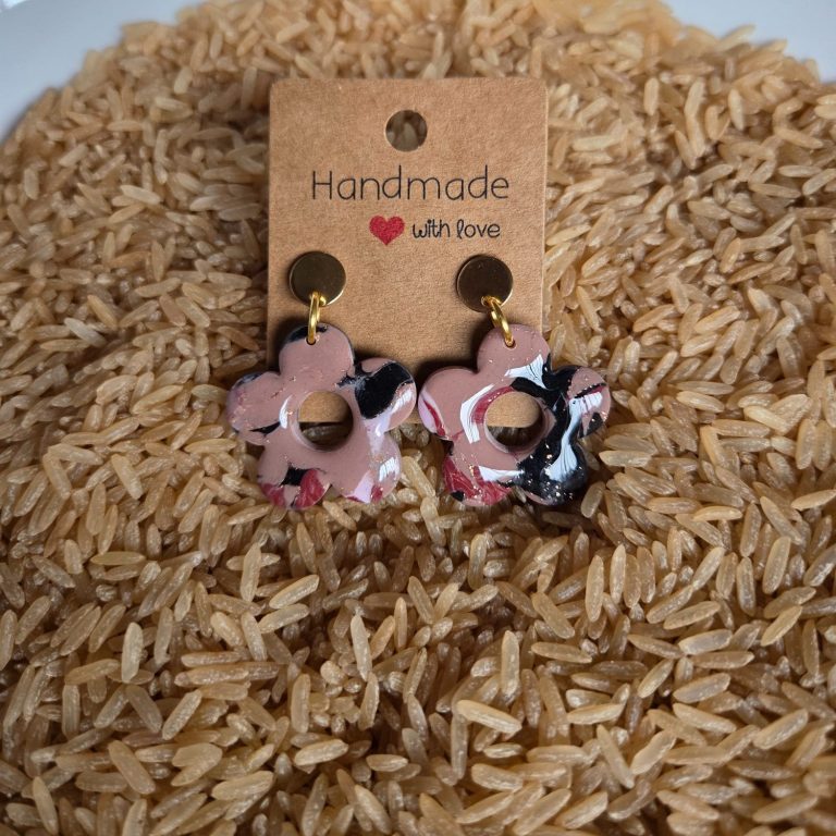 De oorbellen zijn gemaakt met polymeerklei en/of epoxy hars, hierdoor zijn ze erg licht van gewicht en dus fijn om te dragen.